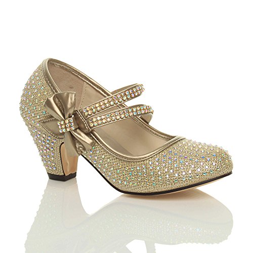 Mädchen Mary Jane Riemen Schleife Brautjungfer Hochzeit Abendschuhe Größe 3
